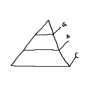 Jag skulle vilja föreslå en aningen annorlunda väg att gå. Döp trianglarnas baser till a, b och c:
