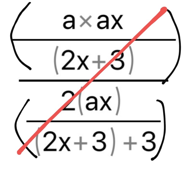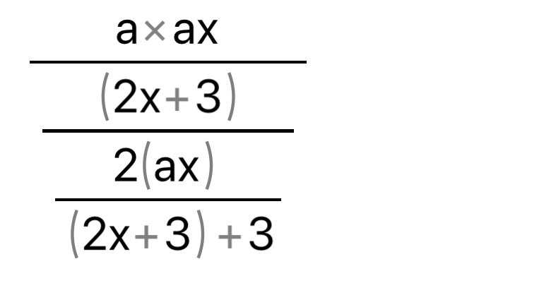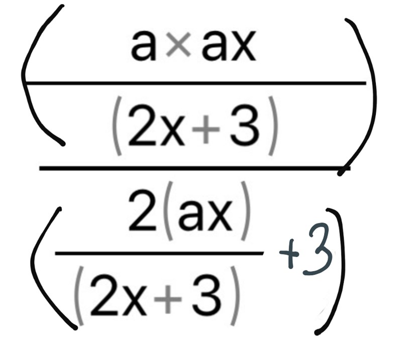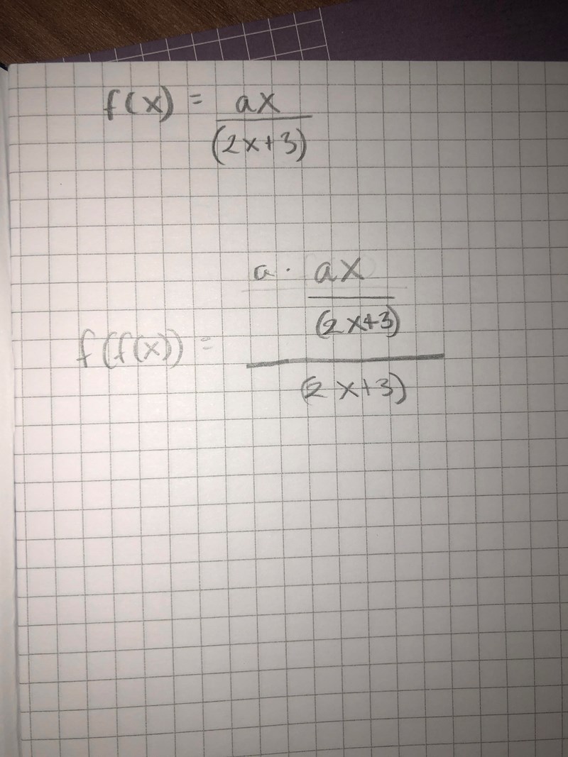 Och kan du då på samma sätt försöka skriva vad som händer när du stoppar in f(x)= ax/(2x+3) i f(x), dvs vad f(f(x)) är?