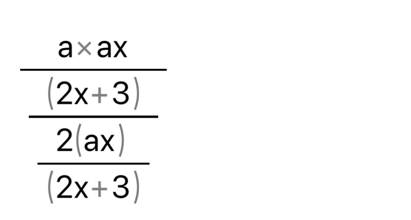 Men du bör inte använda x som symbol för multiplikation. Det är så lätt att förväxla med variabeln x. Använd istället symbolen *, dvs skriv a*ax istället för axax.
