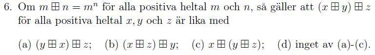 Jag tror det de menar är att om ☺-operatorn är definierad på sättet som de använder det i exemplet, kan du då säga om något av alternativ a-c motsvarar (x☺y)☺z?