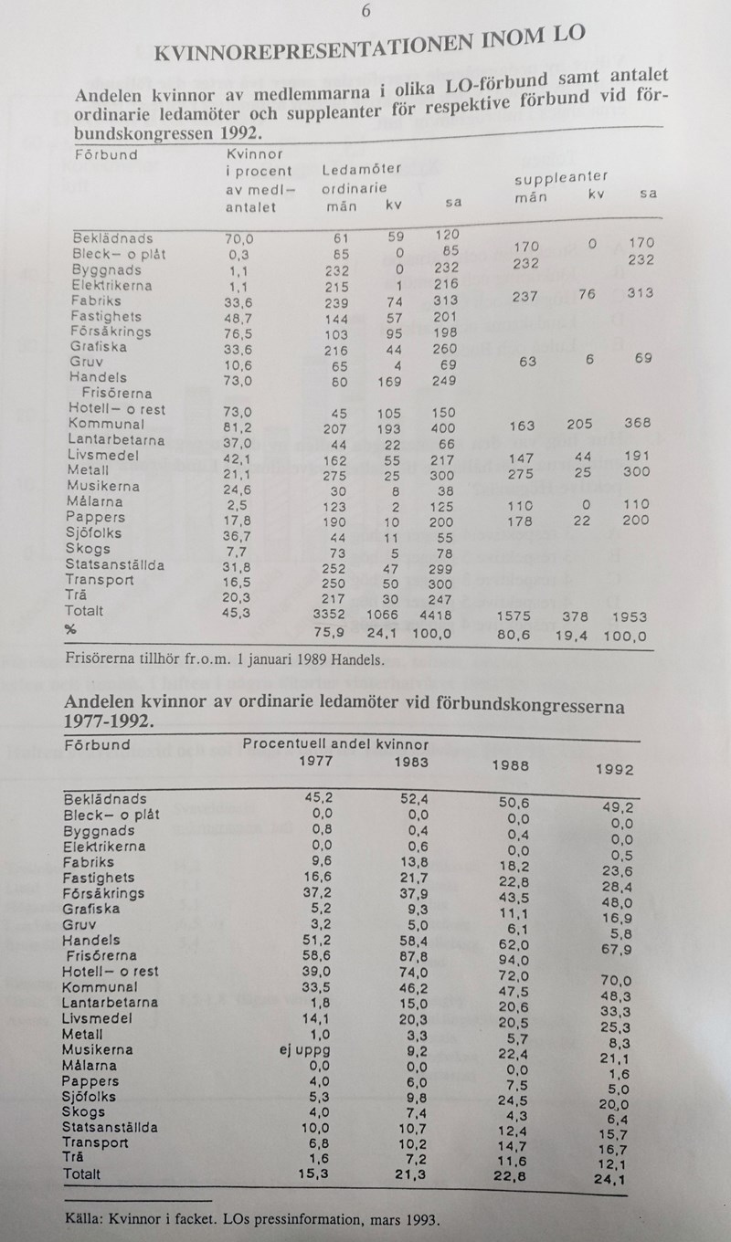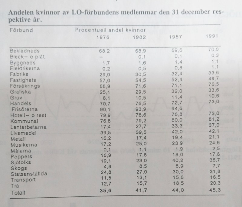 1987 var andelen kvinnor i LO totalt 44%