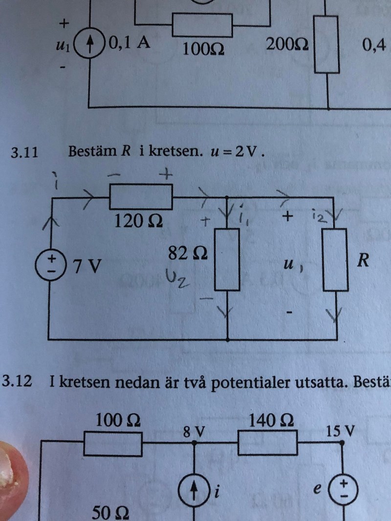 Programmeraren skrev:Spänningen u=2 över R är samma som spänningen över 82-motståndet eftersom de ligger parallellt.