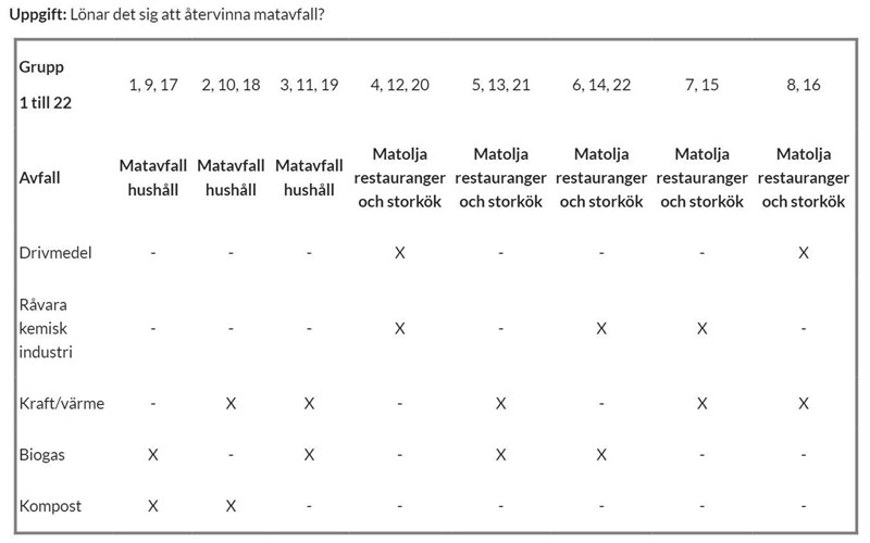 Edit: Vid närmare eftertanke är det nog enklast att skriva om alternativet med kraft/värme och biogas för matolja. Då kan man ganska lätt jämföra hur mycket energi som går att få ut från de två alternativen.