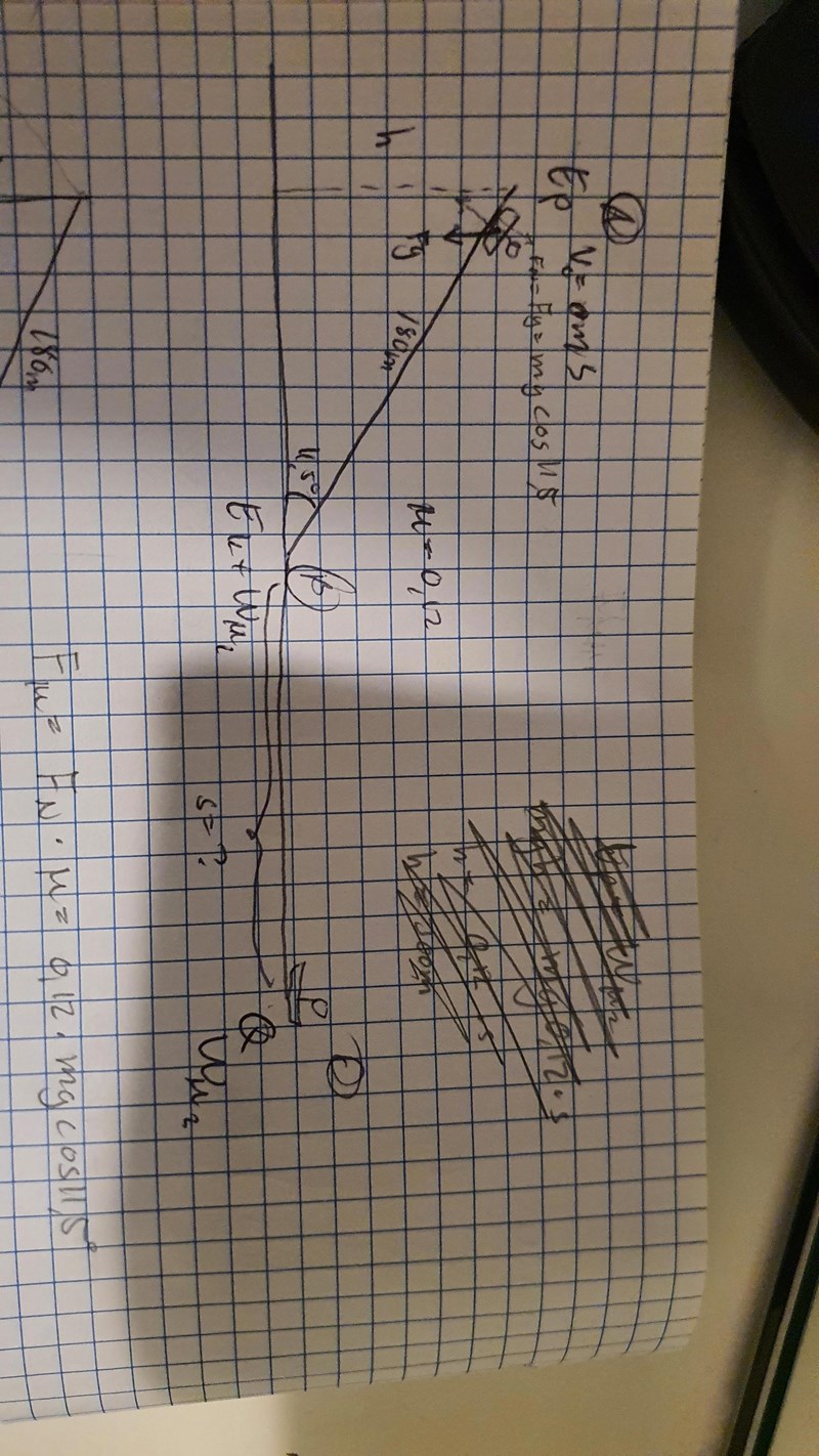Hej jag hade hittat en uppgift och jag hade löst det men frågan är att om jag ska använda friktionarbetet 1 + rörelseenergi = friktionarbetet 2
