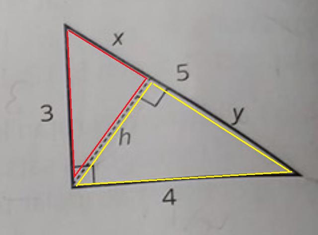 Ett alternativ är att konstatera att de båda trianglarna som bildas är likformiga med den stora.