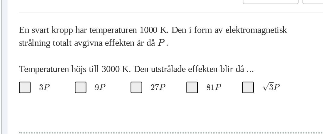 Smaragdalena skrev:A = area, P = effekten och det vi kan byta ut som jag skrev i inlägget men är lite osäker om det är rätt är 𝑀 = 𝜎 ⋅ 𝑇^4?:)