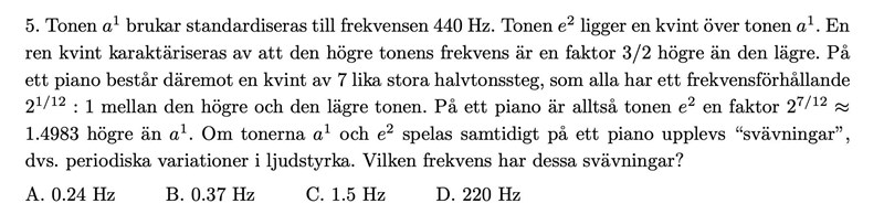 Om frekvensen är 220Hz högre högre som den blir borde väl svävningen vara 220Hz, men jag har tydligen fel. Enligt facit är C rätt svar, varför?