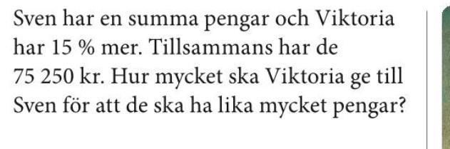 Jag borde väl skriva Sven som x, och Viktoria som 1,15x. Eller?