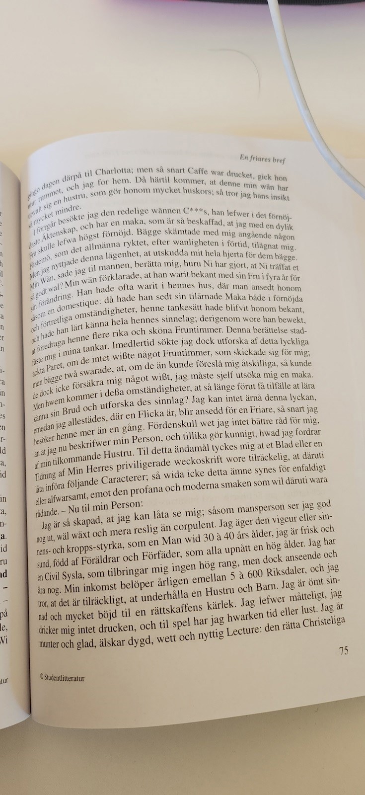 Jag har uppgift att läsa gamalt svenskt brev från 1700 talet men jag har svårigheter att läsa den. Jag fattar knappt vad som står i brevet och har seminarium samt måste besvara vissa frågor innan 25 oktober annars får jag ingen betyg. Jag behöver verkligen att någon hjälper mig med att förklara vad som står i brevet för att kunna svara på frågorna.