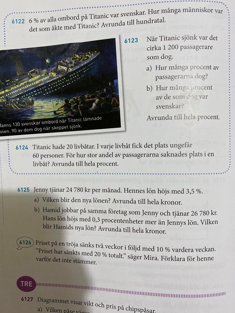 Under bilden så står att 130 stycken svenskar ombord och 130 stycken är 6% så vad är 100 %?