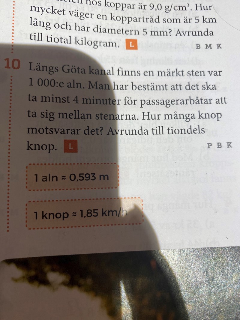 Nu gäller det att omvandla aln/min till knop. (Kanske till km/timme först.)