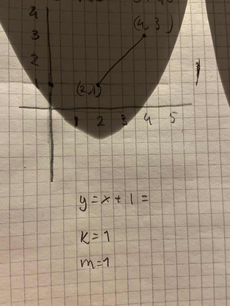 Du har två punkter A(2,1) och B(4,3), då kan du hitta den linje som går genom dessa två punkter.