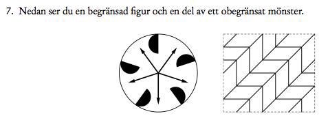 Jag undrar om det stämmer att figuren till vänster är rotationssymmetrisk och består av 5 symmetrilinjer som delar upp figuren i symmetriska figurer. Den har 5-faldig rotation.