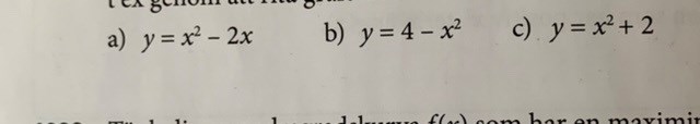 c) Eftersom kvadrattermen aldrig blir negativ så antas minvärdet då kvadrattermen är lika med 00, dvs ymin=2y_{min}=2.