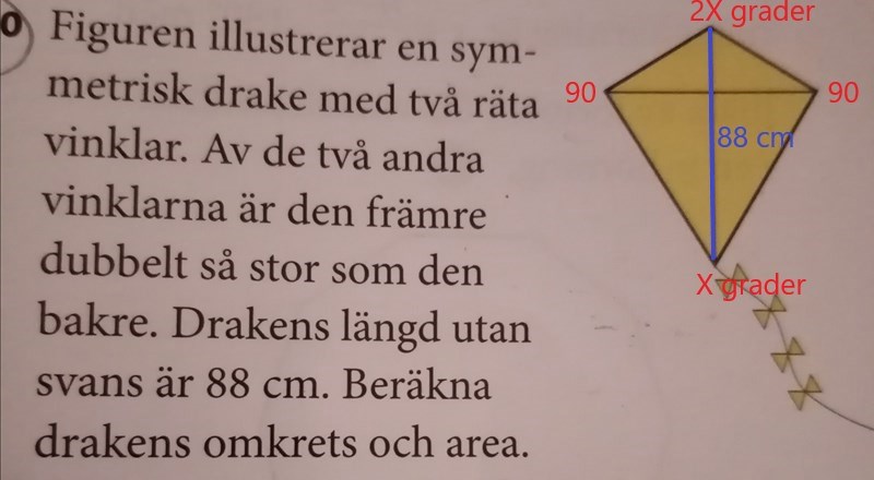 symmetrisk drake med två räta vinklar