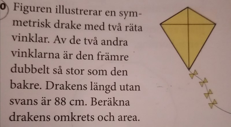 Draken är en fyrhörning med fyra vinklar. Två av dem är räta. Ser du dem?