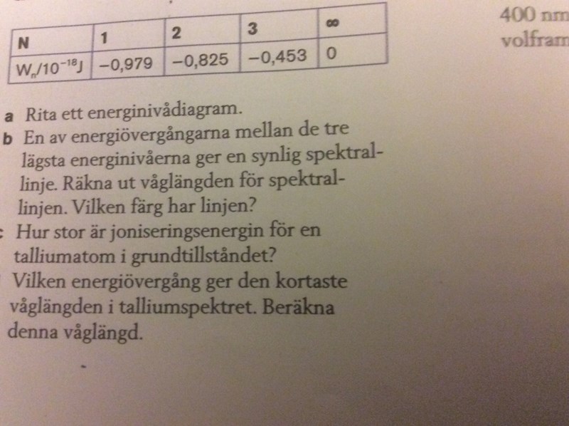 På fråga b undrar jag om det finns ett sätt att veta vilka energidifferenser som ger synligt ljus utan att behöva pröva sig fram??
