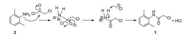 Vi har haft detta som labb och nu behöver jag förklara mekanismen kring detta och rita upp det i ChemSketch. Jag och min labbpartner har två olika mekanismer och kan inte komma fram till vem som har rätt. När vi frågar labbhandledaren säger hon att dimetylacetanilid kan teoretiskt angripa två punkter på kloroacetylkloriden, men att vi ska komma fram till vilken och varför.