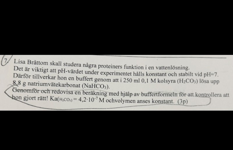 Först räknade jag ut molen på h2co3: 0.1 M x 0.25 mol/dm^3 = 0.025 mol