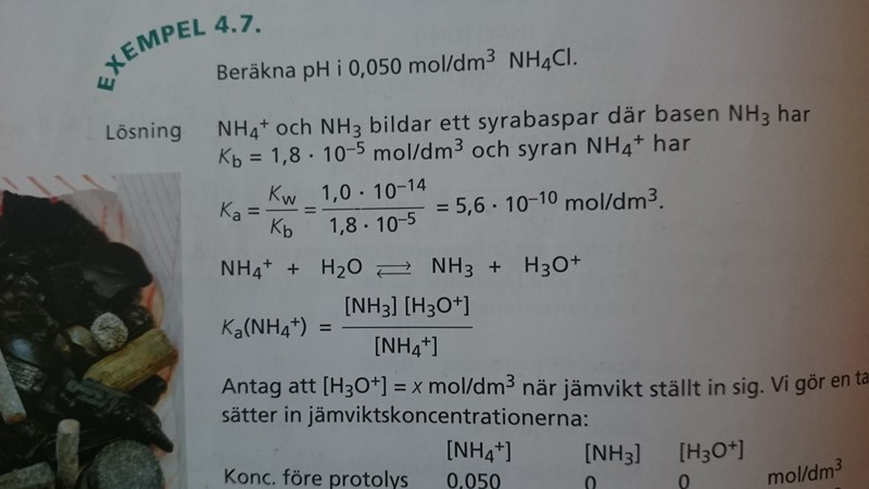 I exemplet har de 0,050 M NH4cl, men hur fick de fram värdet av kb?