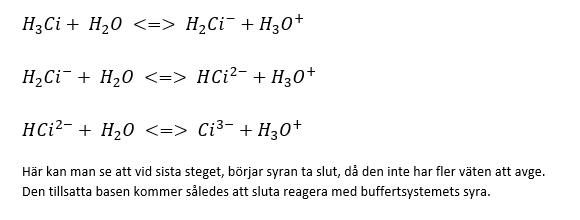men jag väljer att skriva citronsyra som H3Ci. Då har vi följande jämvikter: