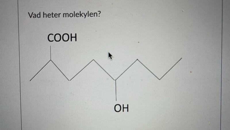 Jag har provat olika varianter på denna molekyl, som jag antar är en syra (pga COOH gruppen?), men båda mina alternativa svar är fel? Jag insåg att jag missade bokstavsordningen först, men det blev ändå inte rätt?