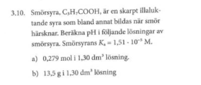 Bra. Vilken är koncentrationen av smörsyra "innan" den protolyseras?