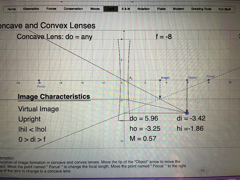 Dubbelkollade med en simulator för konkav lins, och då verkar mina riktningar på strålarna från Mellanbilden och konkava linsen stämma