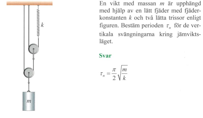 Trissan som massan sitter fast i kan du sedan formulera på samma sätt. Det finns också en enkel regel baserad på antal snören som sitter fast i taket man kan använda sig av men den kan du kanske lära dig efter att du förstått principen.