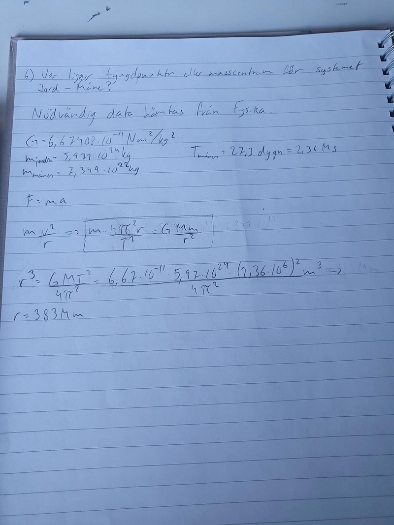 ''Var ligger tyngdpunkten eller masscentrum för systemet Jorden - Månen?''