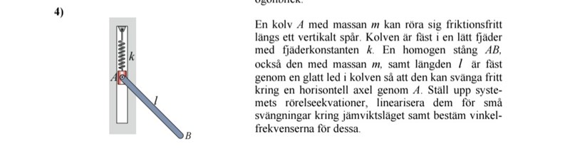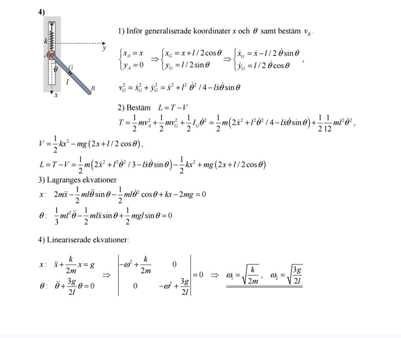Kolvens potentiella energi från höjden är ett bidrag (mgx). Det höjden för G ges av A:s höjd (vilket blir det andra bidraget mgx) + .
