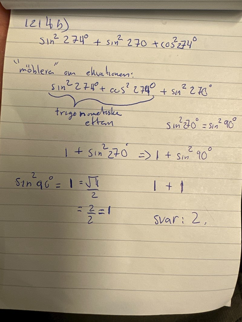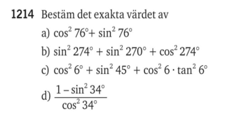 ska man byta ut 1 mot trigonometriska ettan omvänt? Ska man anta att det också är samma grad? sin234+cos234=1