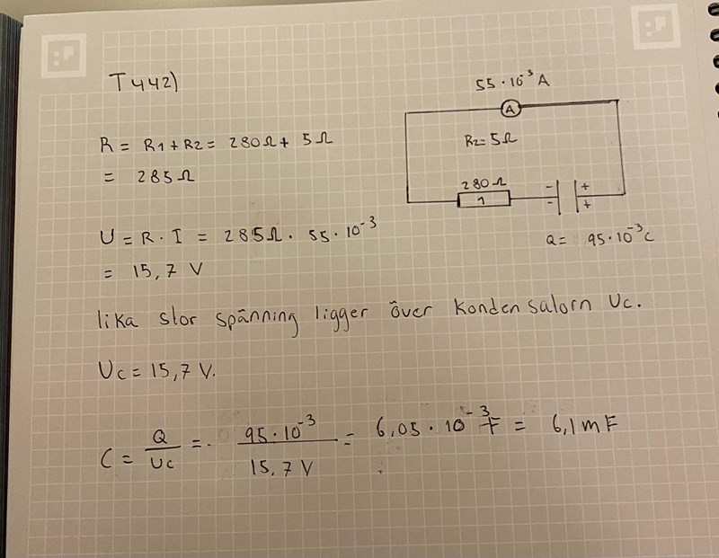 Jag såg i facit att spänningen u och spänningen över kondensatorn är lika stor. Varför är den det om det är en seriekoppling?