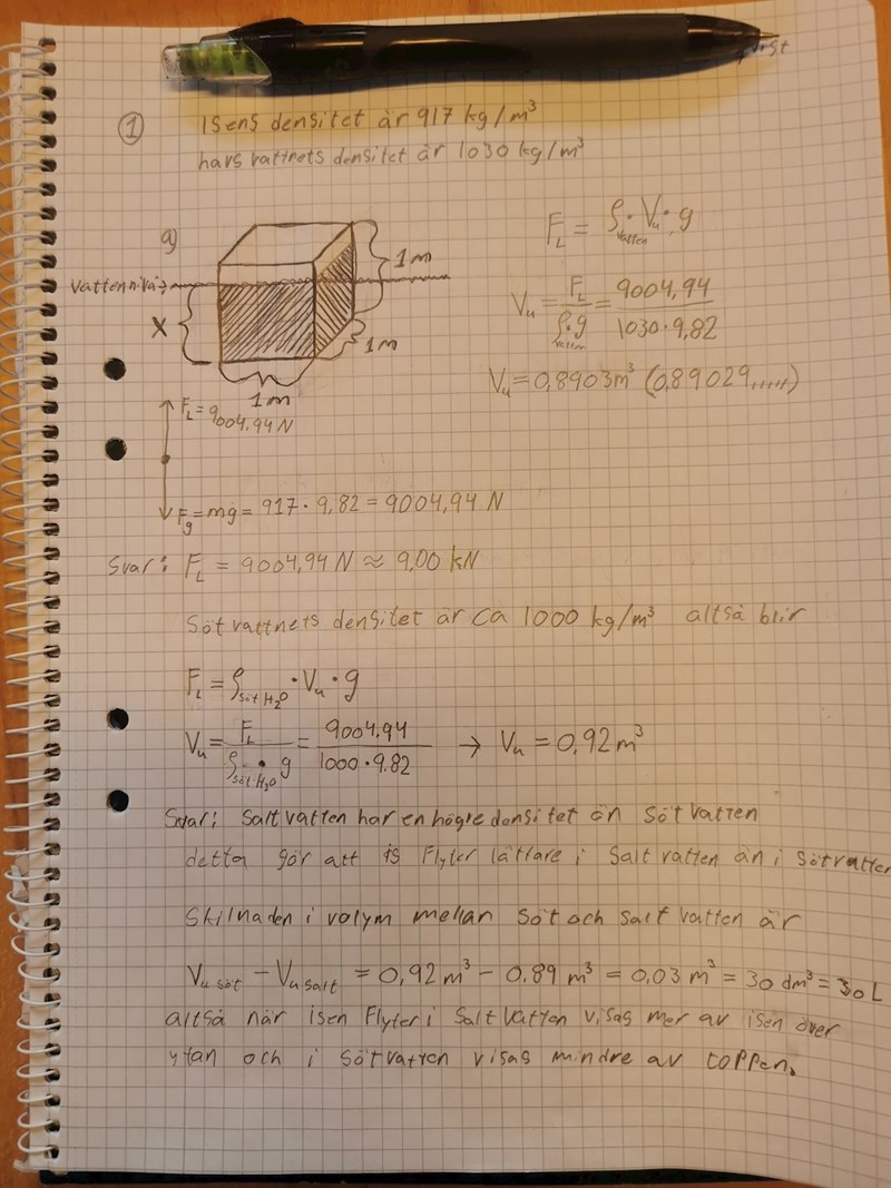 Ta fram ett algebraiskt samband för andelen av isbergets volym som är under ytan.