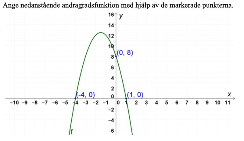 Man ska ju skriva en ekvation med hjälp av och att c-värdet är 8 har jag redan räknat ut då f(0)=8. Har även räknat ut symmetrilinjen med hjälp av formeln men vet inte om man behöver det.