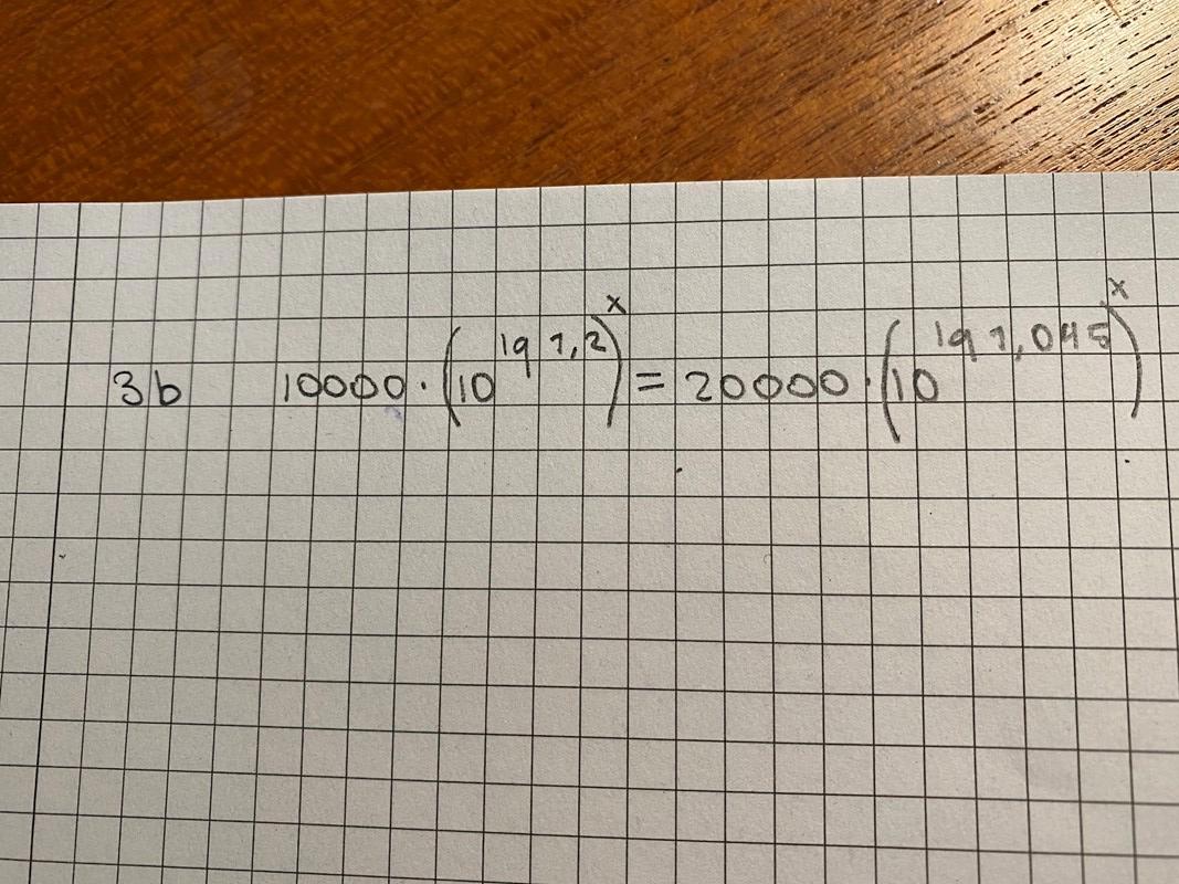 Vet fortfarande inte hur jag löser ekvationen då jag har två exponenter... hur gör jag det?