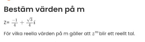 För att zm ska sakna imaginärdel så ska argumentet för zm vara n•180°, där n är ett heltal.