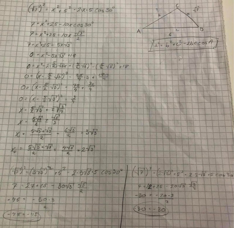 Hej, är osäker på om jag löst frågan rätt. Jag använde mig utav cosinussatsen, och gjorde på följande sätt: