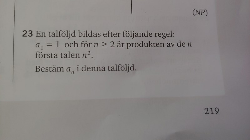 Hur ska man börja på denna uppgift? Det är ju varken en aritmetisk eller geometrisk talföljd då det handlar om produkter och k-värdet i den geometriska summaformeln förändras. Dock är bara den geometriska logisk.