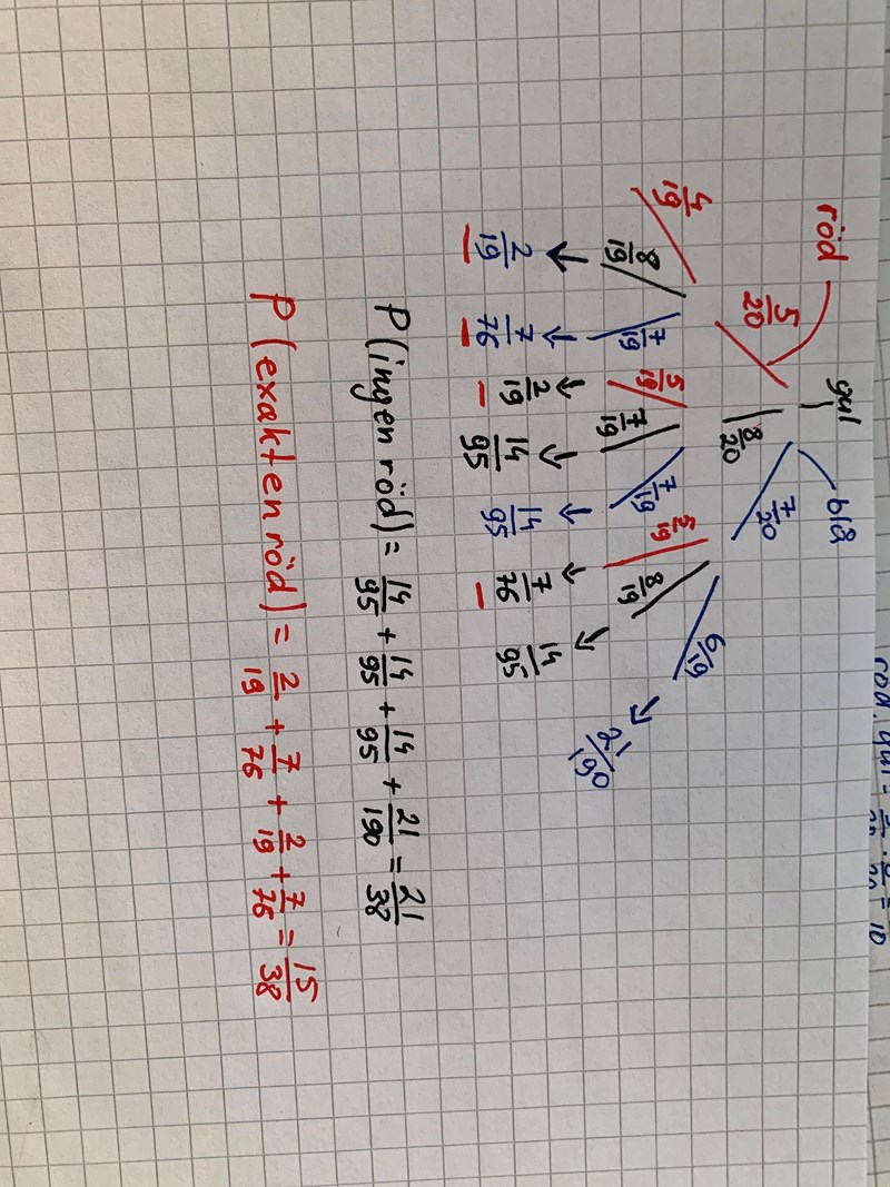 P(två röda)= 5/20*4/19 = 1/19