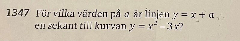Lös ekvationen x2 - 3x = x + a för att se för vilka a du har en eller flera skärningspunkter.