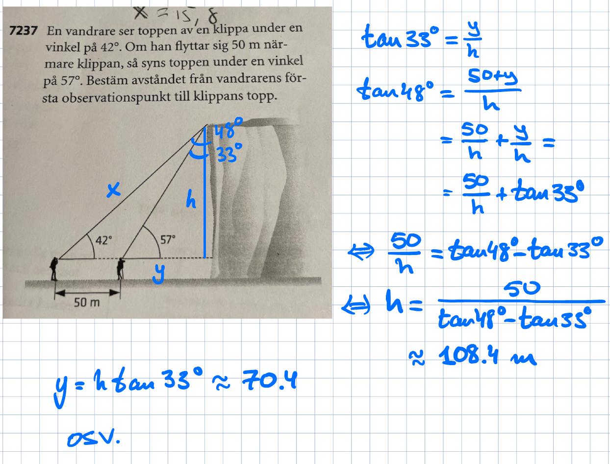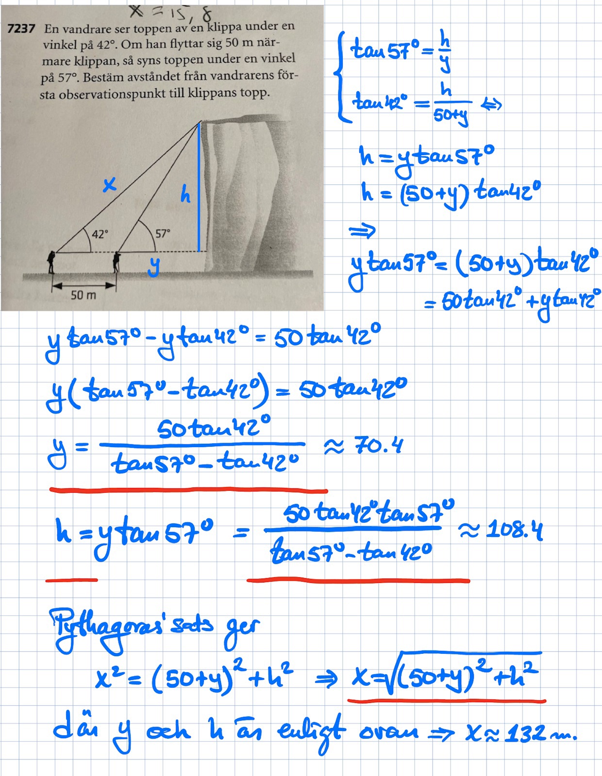 Det här ser strålande ut! Jag fick någon gång tidigare 133 som svar. I facit står det dock 160 m.