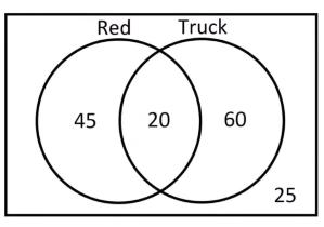 I den här så betyder det väl att Red\Truck=45. Alltså är |Red|=65 och inte endast 45.