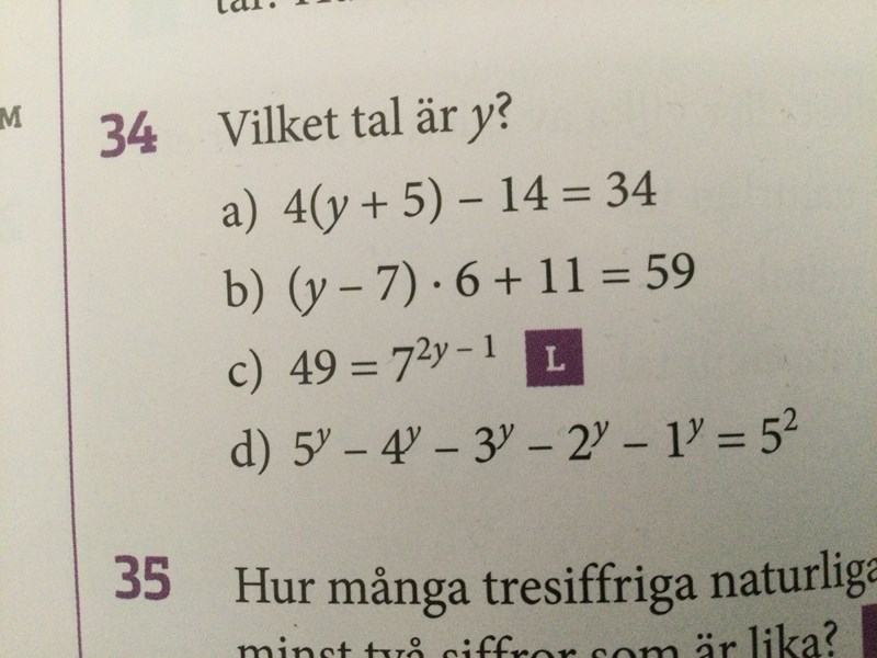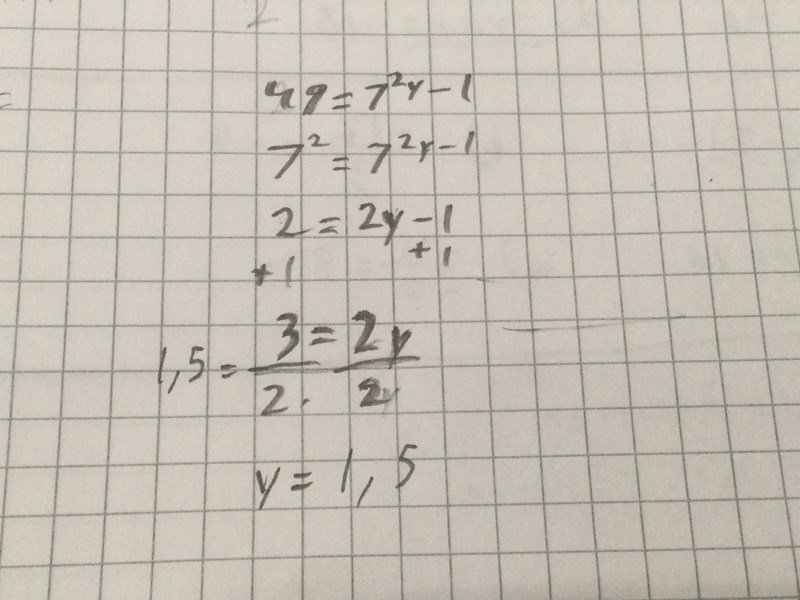Ok, så du har 72 = 72y-1 . Kan du dra någon slutsats från det?