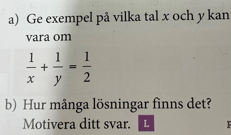 Sedan är frågan hur mycket motivering det behövs för b), alltså att det finns oändligt många lösningar.