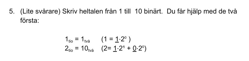 Vi kan skriva talet som en summa av tvåpotenser enligt .