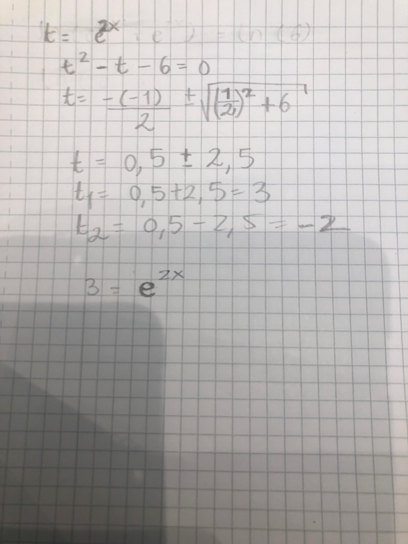t2+t-6=0t1=-3t2=2e2x=2och e2x=-3
