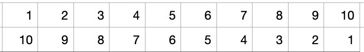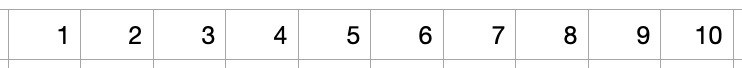Vi börjar med talen 1 till 10. Vi skriver upp dem på en rad: