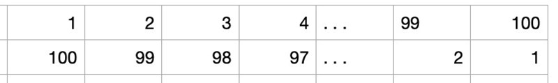 Men nu har vi tagit med varje tal mellan 1 och 10 två gånger. Summan av talen 1 till 10 blir alltså hälften, 110/5=55.