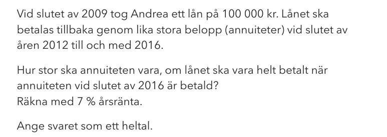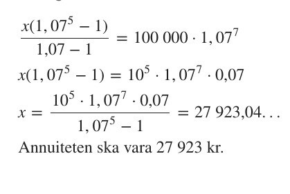 Jag har förstått att banken ska få tillbaka 100 000 *1,07⁵, va står potensen 7 för?? Jag förstår inte frågan kan någa formulera det på annat sätt, eller förklara lösningen.